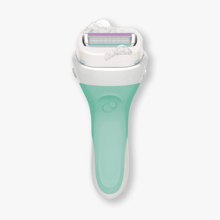Moisturizes the skin while shaving and its four-blade pivoting head glides across the entire body.