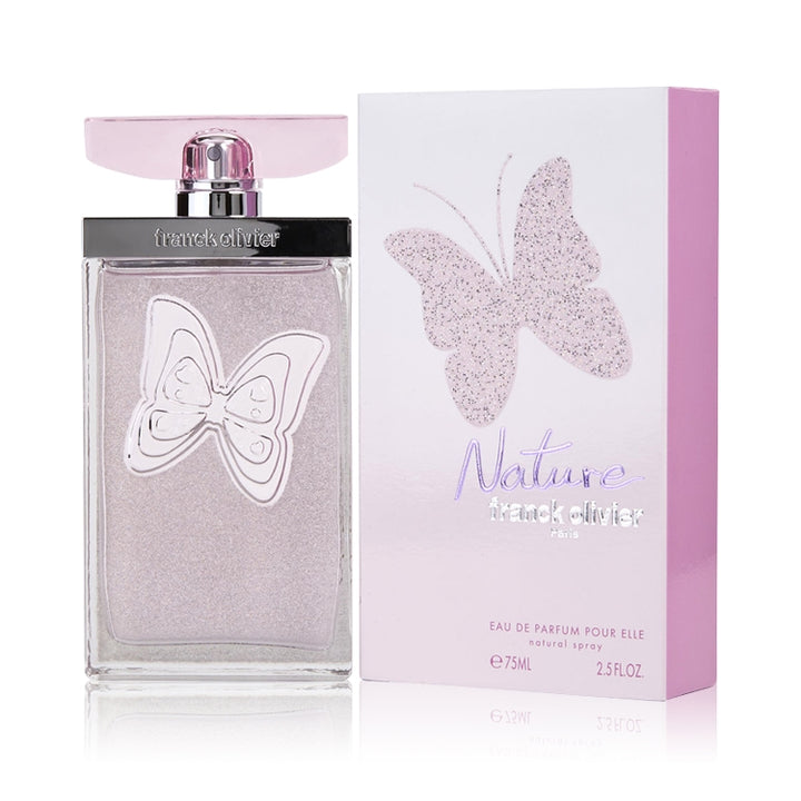 Nature is a floral fruity fragrance for women from Franck Olivier, presented in a beautiful feminine bottle. The top notes of the fragrance highlight the fresh scents of a blend of vibrant bergamot, delicious peach, optimistic lychee, warm velvet and a touch of Amalfi lemon. The top notes settle into a floral heart of rich jasmine, delicious cinnamon, soft apple, charming lily of the valley and fragrant lilac. The spicy and woody base of the fragrance consists of a blend of warm sandalwood, soft white musk and a touch of Virginia cedar. Nature is designed for the happy, summer-loving woman who has a free mind and high spirits.