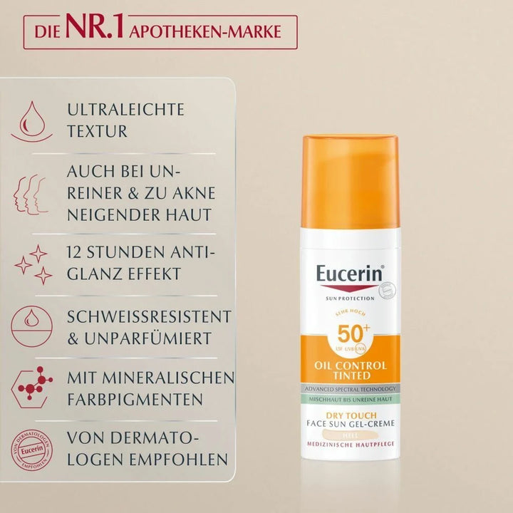 Eucerin sunscreen Excellent sunscreen with a very light, fast-absorbing, non-greasy and non-sticky texture. Eucerin's fragrance-free formula has an immediate and long-lasting mattifying effect and is...