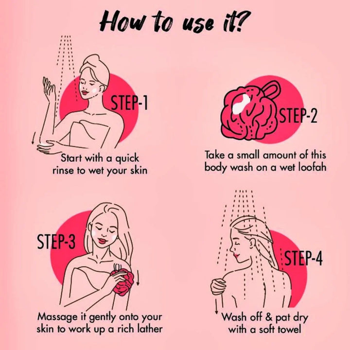 يوضع جل الاستحمام على بشرة مبللة, يدلك للحصول على الرغوة, ثم يغسل بالماء الدافئ