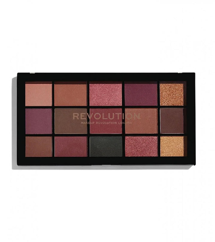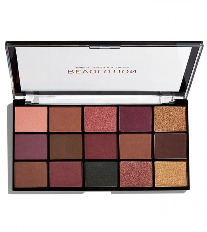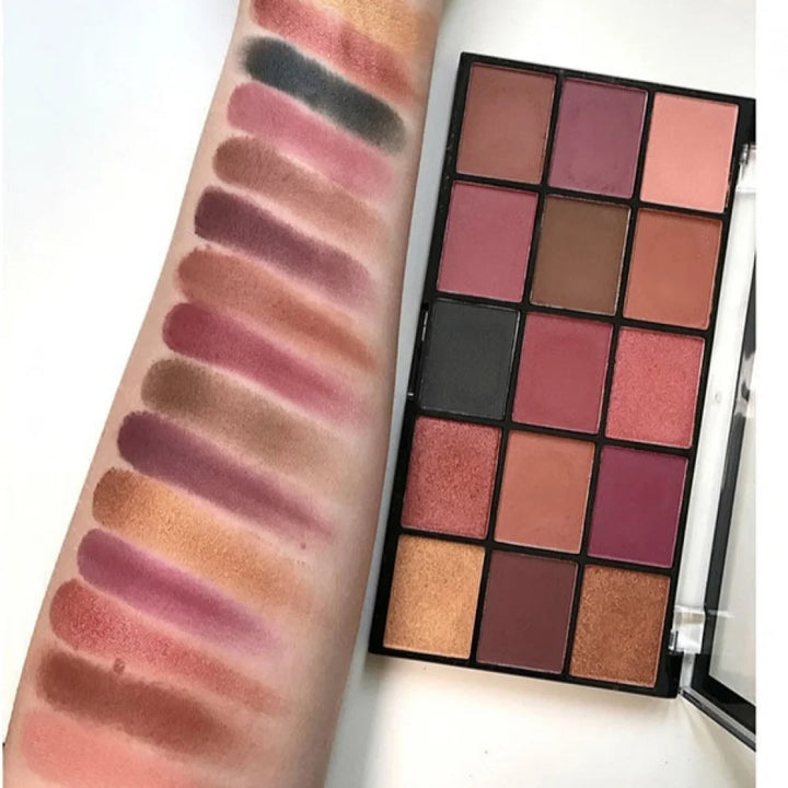 ريفولوشن لوحة ظلال عيون مزيج رائع حقًا من 15 لونًا ناعمًا من اللمسات النهائية غير اللامعة والساتانية واللمعة. ظلال تتميز باللون الأحمر المذهل والمارون...