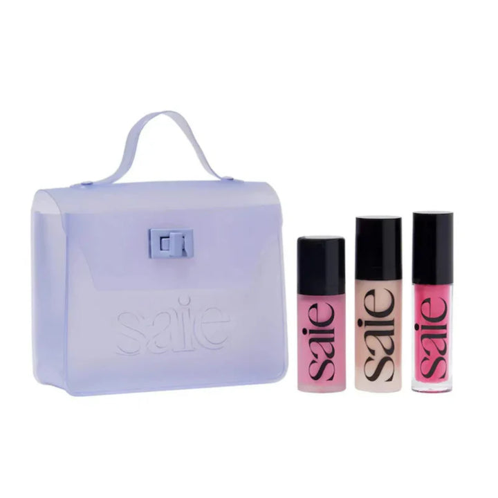 مجموعة من أساسيات SaieGlow™ الأكثر مبيعًا - مُضيئ صغير وخفيف الوزن ، وأحمر خدود كريمي سائل بالحجم الكامل ، وزيت مرطب لمعان الشفاه. كل ما تحتاجينه...
