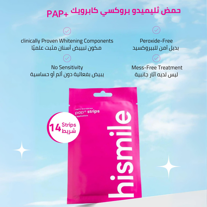 مكون تبييض أسنان مثبت علميًا وهو بديل آمن للبيروكسيد يسمح بالتبييض بفعالية دون ألم أو حساسية.