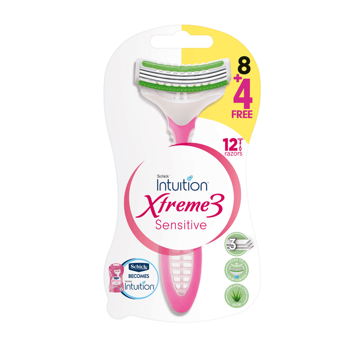 شفرات حلاقة اكستريم 3 للبشرة الحساسة من شيك انتيوشن - 8+4 مجانًا