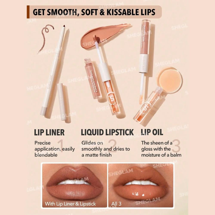 - صنعي إضافة مرطبة إلى مجموعة مستحضرات الشفاه الخاصة بكِ مع طقم الملمع ومحدد الشفاه هذا.