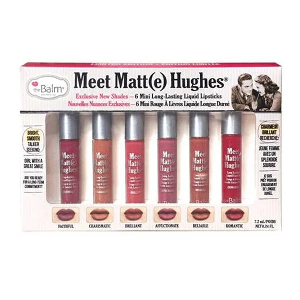 مجموعة 6 ميني احمر شفاه ميت مات هيوز من ذا بالم. مجموعة أحمر الشفاه، بألوان متعددة ومميزة، بتركيبة سائلة كثيفة اللون تجف سريعا. لمسة مطفية....