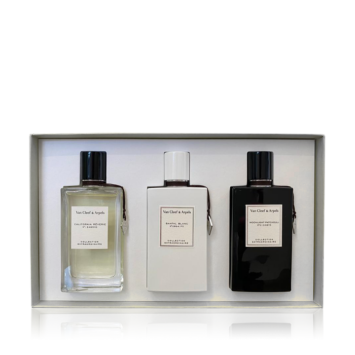 فان كليف اند اربيلس مجموعة إكسترا أوردينير (كاليفورنيا ريفري أو دو برفيوم+ سانتال بلانك أو دو برفيوم+ مون لايت باتشولي أو دو برفيوم) مجموعة عطرية - 45X3 مل
