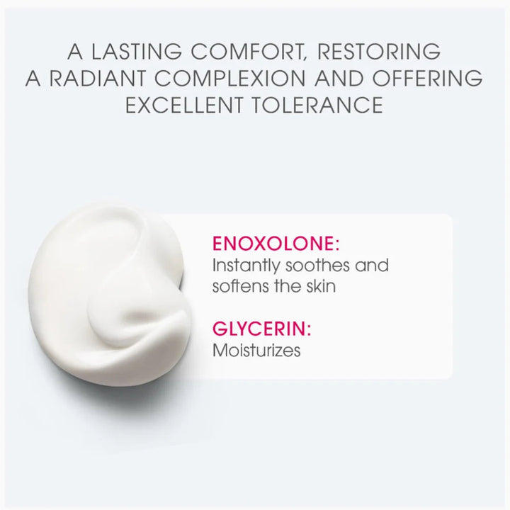 يلطف على الفور الاحساس بالحرقان والاحمرار والشد ويعيد البشرة الى اشراقها.