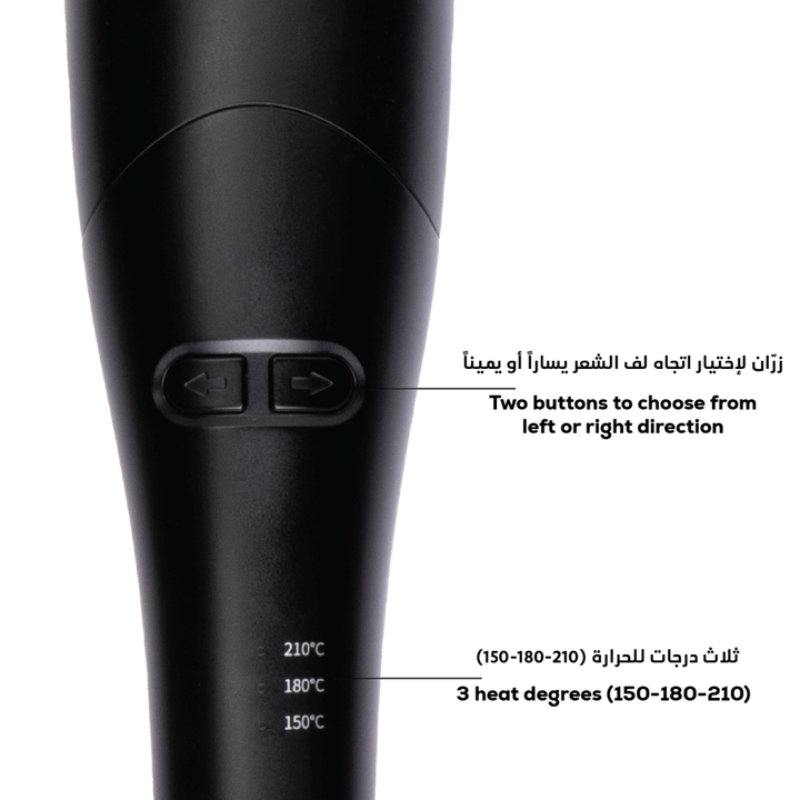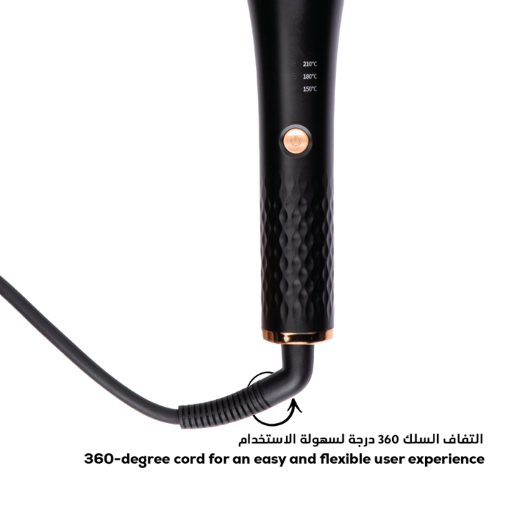 ثلاث درجات حرارة (210-180-150): يُتيح لكِ الجهاز اختيار درجة الحرارة المناسبة لنوع شعركِ، مما يُحافظ على صحة شعركِ ويُجنّبكِ أيّ حروق أو تلف.
