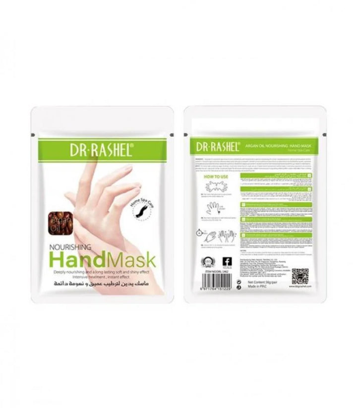 ماسك اليدين بخلاصه زيت الاركان المغذي - معالجة مكثفة نتيجه فوريه تغذيه عميقه ونعومه واشراق دائمان من د.راشيل يرطب لايادي الخشنه والجافة يجعل البشرة...