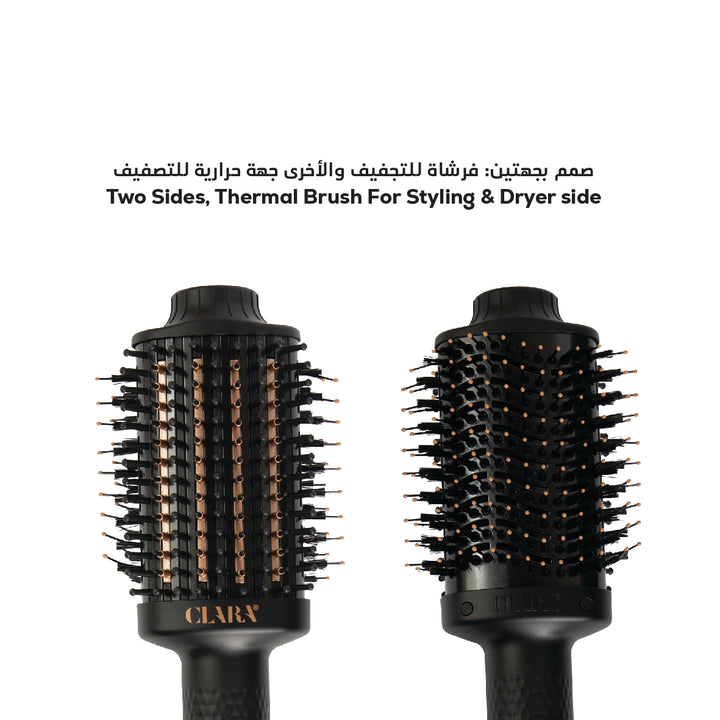 - صمم بجانبين : جانب فرشاة حرارية للتجفيف وجانب للتصفيف.