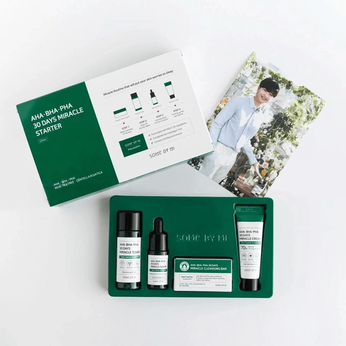 سوم باي مي مجموعة سيروم المعجزة الكوري بمكونات فعالة ومشتقة من الطبيعة مثل AHA/BHA/PHA تعمل كمقشر خفيف للبشرة.