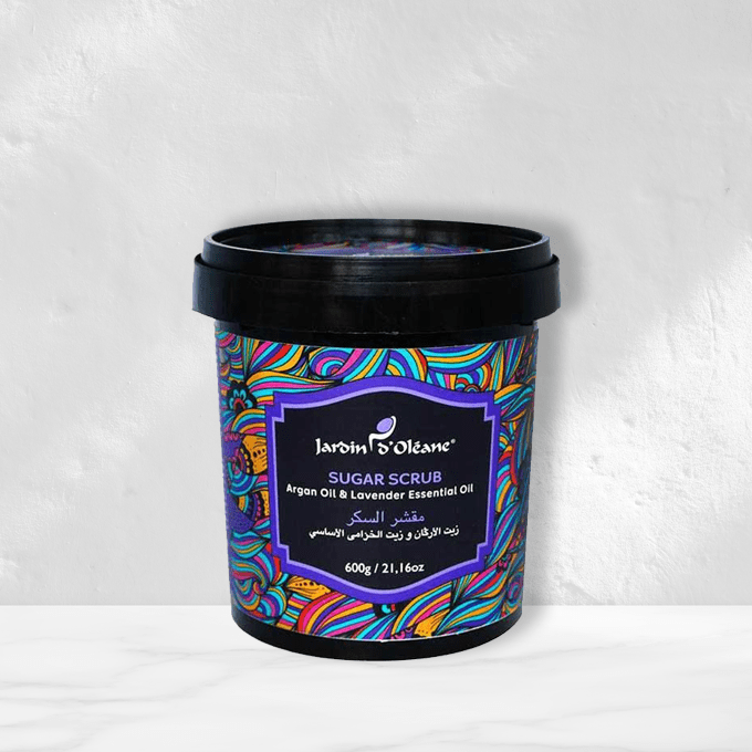 مقشر السكر بزيت الأركان وزيت الخزامى الأساسي من جاردن دي اوليان:
