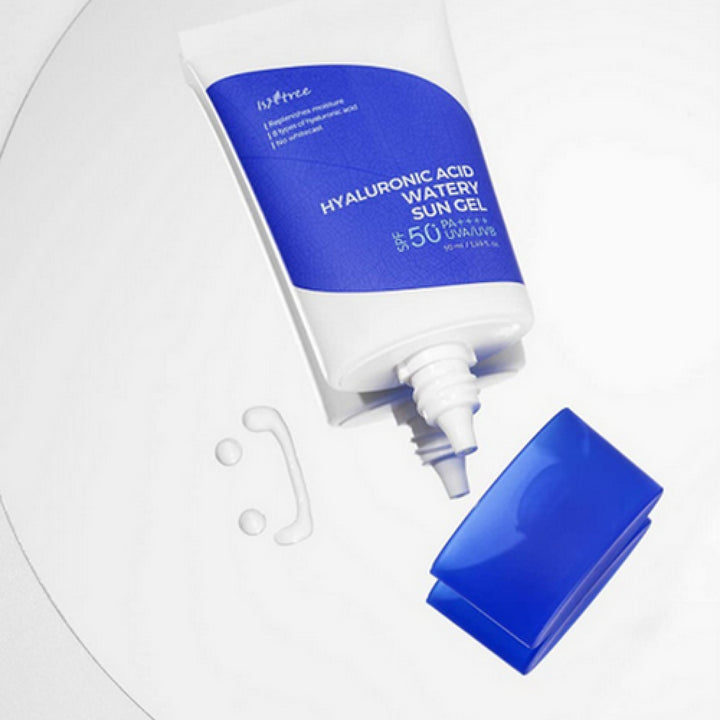 - جل واقي شمس جل مائي بحمض الهيالورونيك يحمي البشرة من الأشعة فوق البنفسجية دون أن يترك طبقة بيضاء.