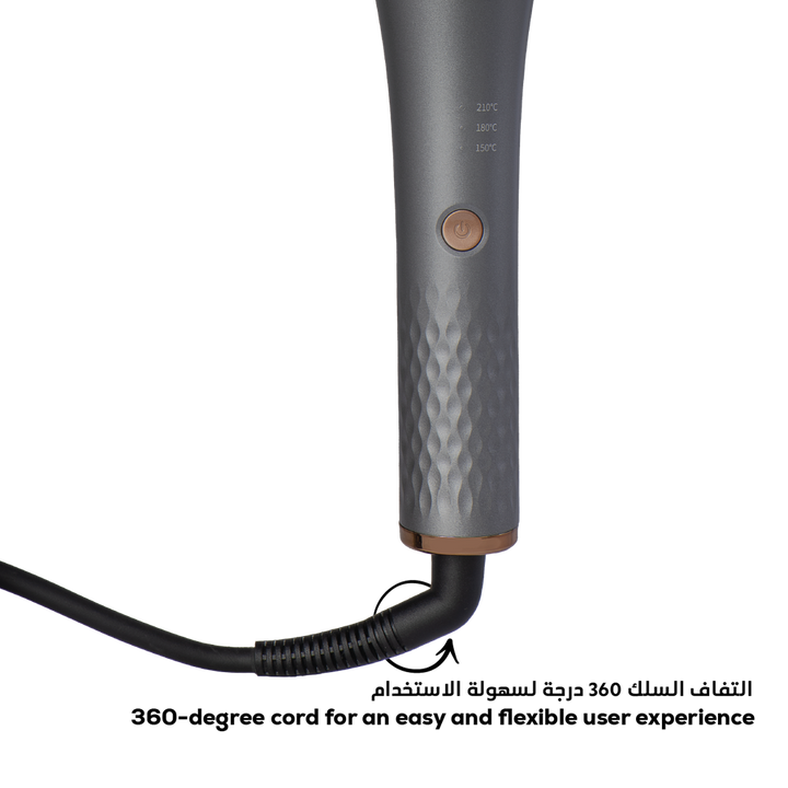 يمنحك شعراً مموجاً بمظهر خيالي بسهولة وبدون حروق ونتيجة شعر لامع بدون جهد مع الإسطوانة المطلية بزيت السيراميك.