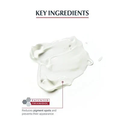 • كما يحتوي على على Thiamidol، وهو عنصر فعال وحاصل على براءة اختراع يعالج السبب الجذري لفرط التصبغ من خلال تثبيط إنتاج الميلانين.